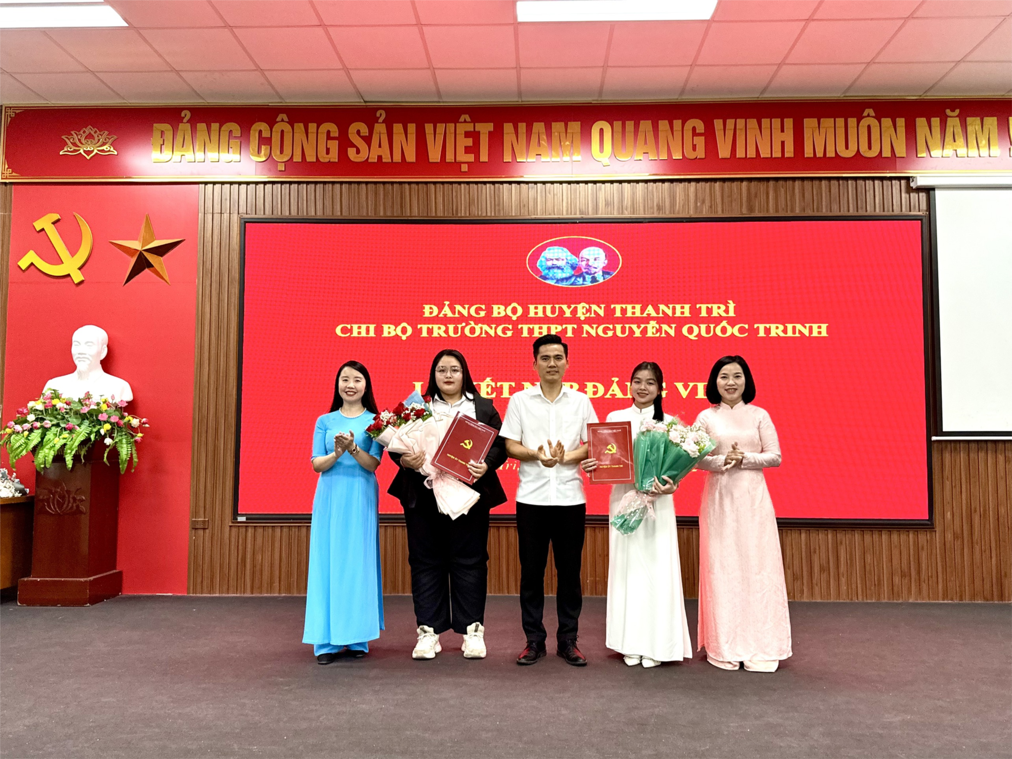 Ngày 12/4/2024, được sự đồng ý, chỉ đạo của Huyện ủy Thanh Trì, Ban Tổ chức Huyện ủy, Chi bộ Trường THPT Nguyễn Quốc Trinh đã tổ chức Lễ kết nạp đảng viên cho 02 quần chúng ưu tú là Đoàn Khánh Linh học sinh lớp 12A4 và Nguyễn Phương Nhi học sinh lớp 12D1 của nhà trường.