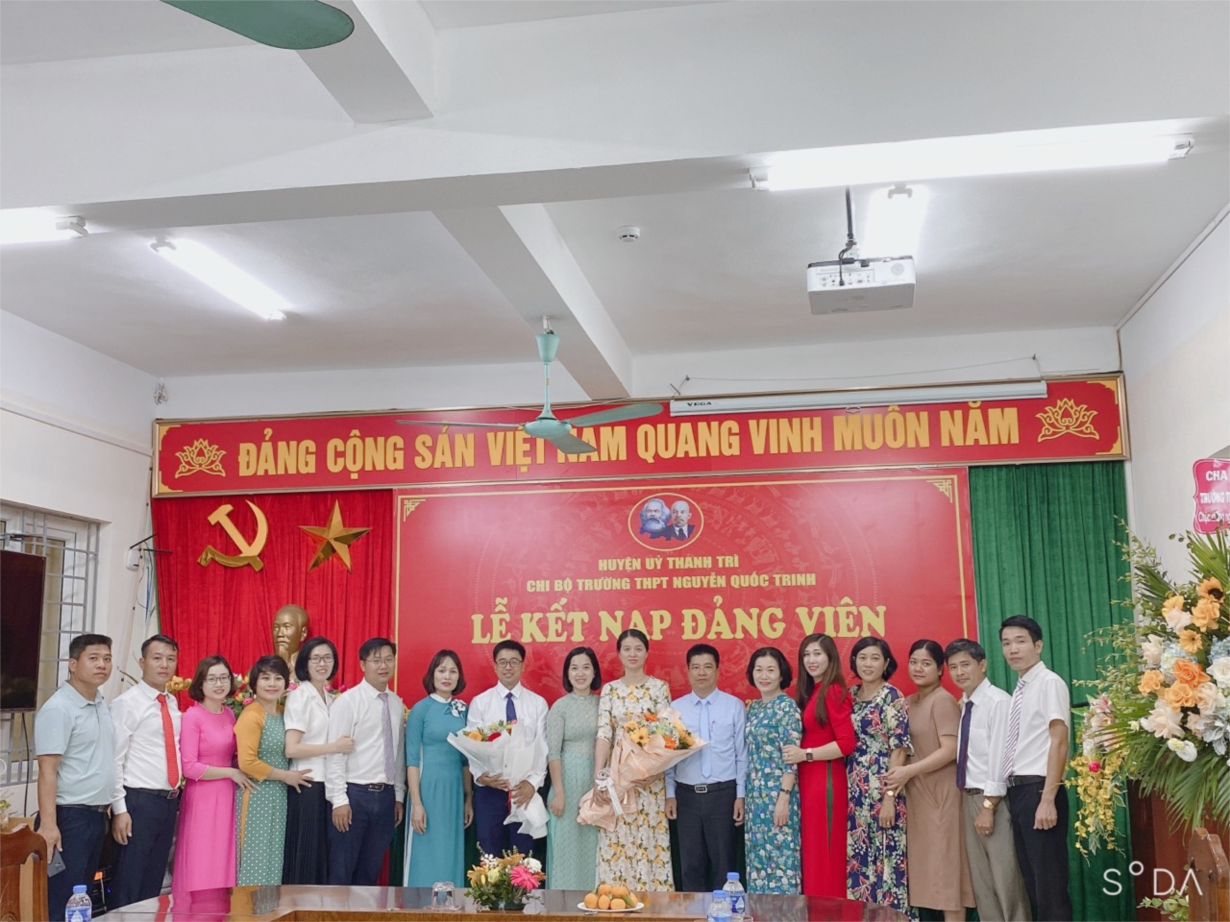 Ngày 18/11/2022, được sự đồng ý, chỉ đạo của Huyện ủy Thanh Trì, Ban Tổ chức Huyện ủy, Chi bộ Trường THPT Nguyễn Quốc Trinh đã tổ chức Lễ kết nạp đảng viên mới cho 02 quần chúng ưu tú: Đồng chí Nguyễn Hữu Thái - TTCM tổ Ngoại ngữ -Thể dục-Quốc phòng và đồng chí Đặng Thị Thanh Hương - TTCM tổ Lí-Hoa-Sinh-Công nghệ.