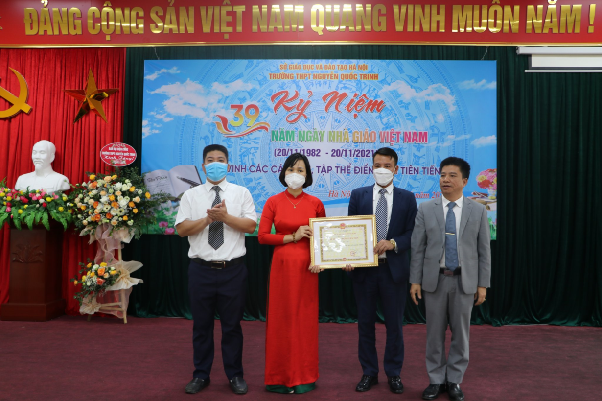 Ngày nhà giáo Việt Nam năm nay diễn ra trong điều kiện thật đặc biệt, tình hình dịch bệnh Covid 19 vẫn còn diễn biến phức tạp, học sinh Thủ đô chưa được quay trở lại trường nhưng không vì thế mà ý nghĩa của ngày nhà giáo Việt Nam mất đi.Trong không khí cả nước hướng về Ngày Nhà giáo Việt Nam 20/11, sáng ngày 20/11/2021, Trường THPT Nguyễn Quốc Trinh đã tổ chức buổi gặp mặt Kỷ niệm 39 năm Ngày Nhà giáo Việt Nam (20/11/1982 - 20/11/2021) và tôn vinh các gương điển hình tiên tiến. Đây là dịp để ôn lại truyền thống tốt đẹp của dân tộc Việt Nam. Đồng thời cũng là dịp để vinh danh các thầy giáo, cô giáo, cán bộ viên chức nhà trường, các điển hình, tiên tiến có nhiều đóng góp và đạt được nhiều thành tích nổi bật trong công tác giảng dạy, nghiên cứu khoa học. Buổi gặp mặt diễn ra vô cùng đặc biệt dưới hình thức trực tiếp kết hợp trực tuyến và thực hiện nghiêm túc các quy định về phòng chống dịch Covid-19.